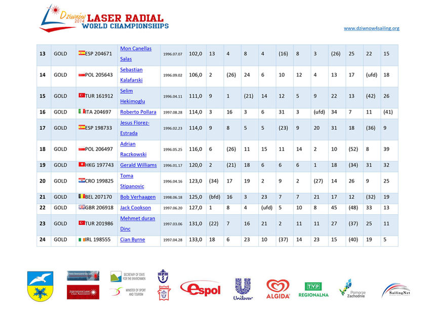 Laser Radial Ifjúsági Világbajnokság, Dziwnow 2014